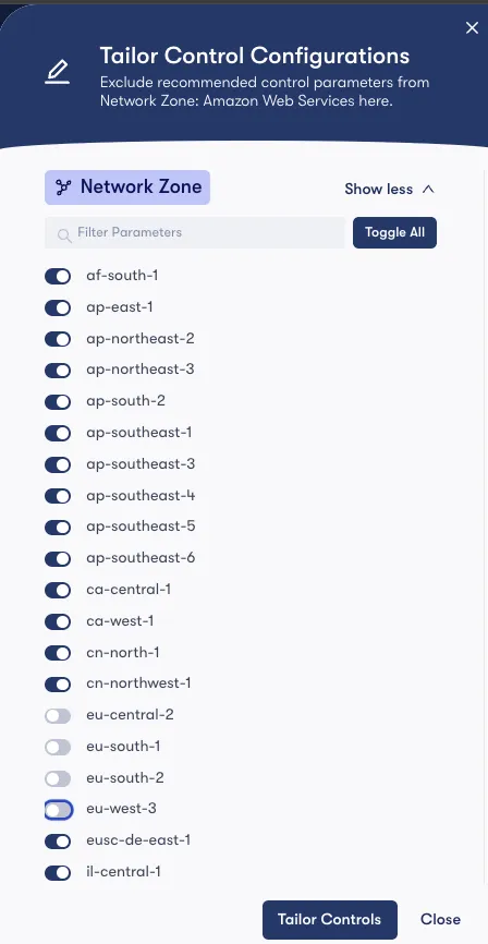 We will simply deselect the EU AWS regions listed below, and the Quest will then update the Network Zone and block within Okta to remove these regions, thus permitting authentication requests from AWS EU regions.
