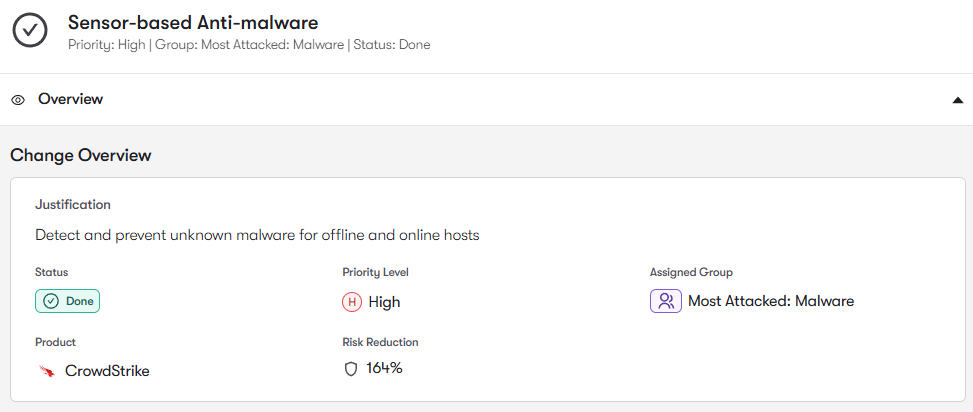 CrowdStrike Falcon uses prevention policies to block malware, suspicious behaviors, and exploit attempts on endpoints. Reach analyzes settings across host groups to identify and remediate devices operating in detection-only modes, weakened malware protection settings, or inconsistent policy enforcement.