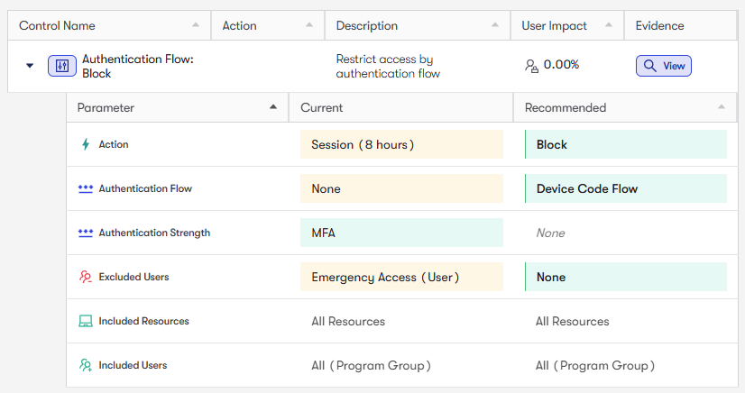 Multi-factor authentication and authentication strength policies are critical defenses against credential-based attacks. Reach analyzes Conditional Access authentication requirements to identify users, applications, or sign-in scenarios where MFA is not required or weaker authentication methods are allowed. It also surfaces inconsistencies between policies applied to different groups. By strengthening authentication enforcement, Reach helps prevent attackers from gaining access using stolen credentials.