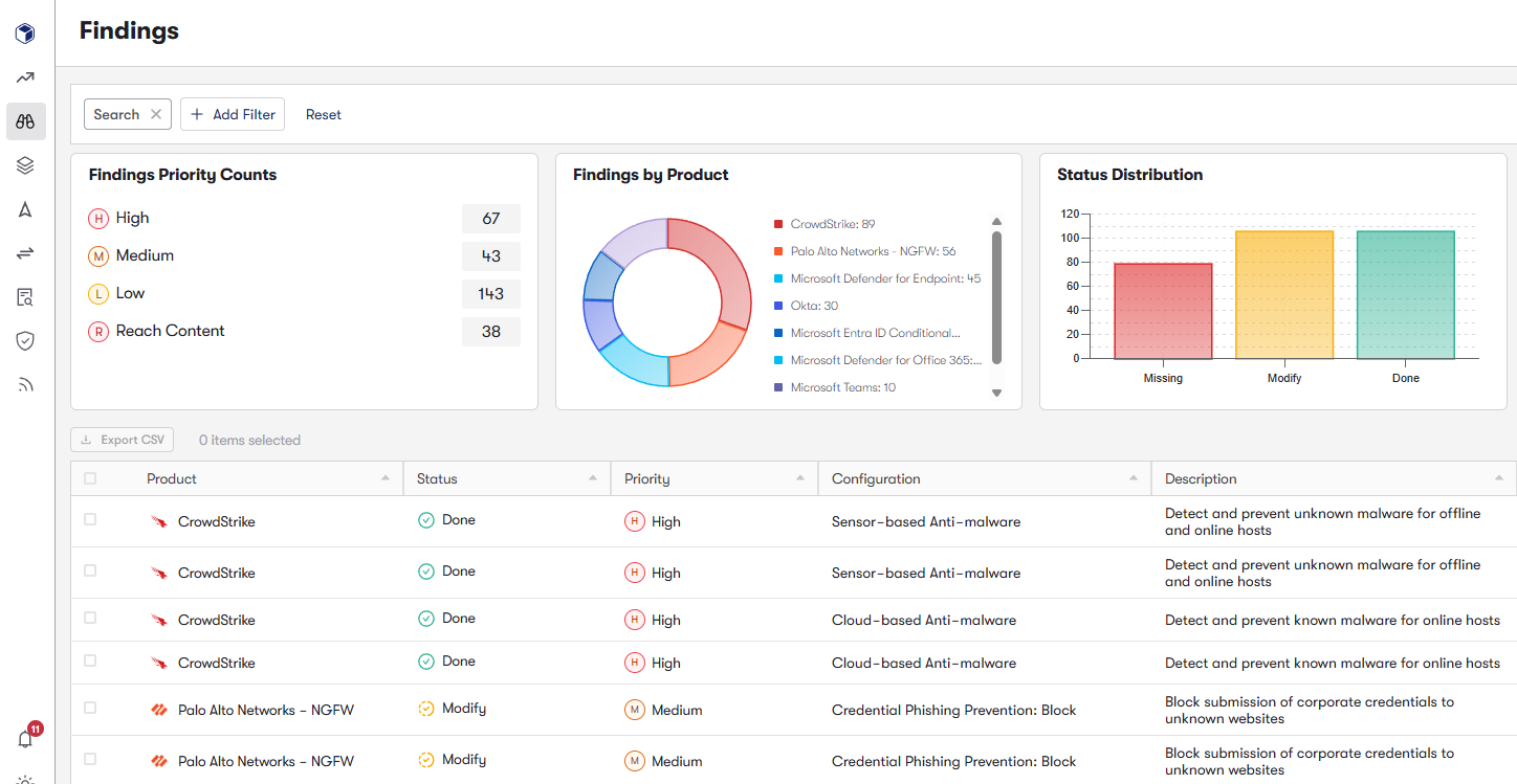Reach evaluates Posture Profiles to identify weak or missing device checks. Strengthening posture enforcement ensures only trusted devices can access applications.