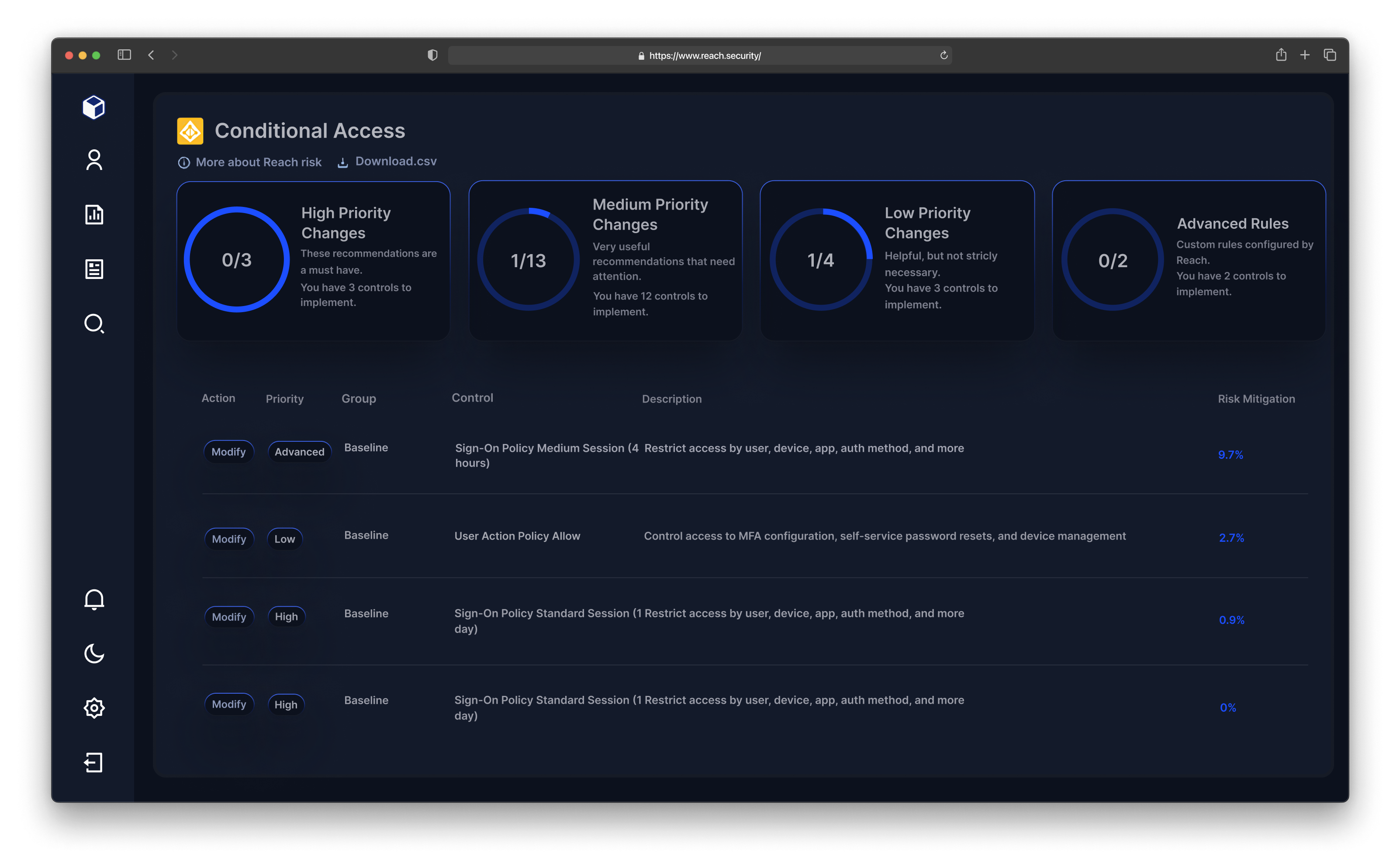Reach continuously evaluates your E3/E5 environment, analyzing configurations and identifying opportunities for improvement. By mapping security controls to real-world threats, Reach ensures you’re fully leveraging Microsoft’s built-in protections to strengthen your defense.